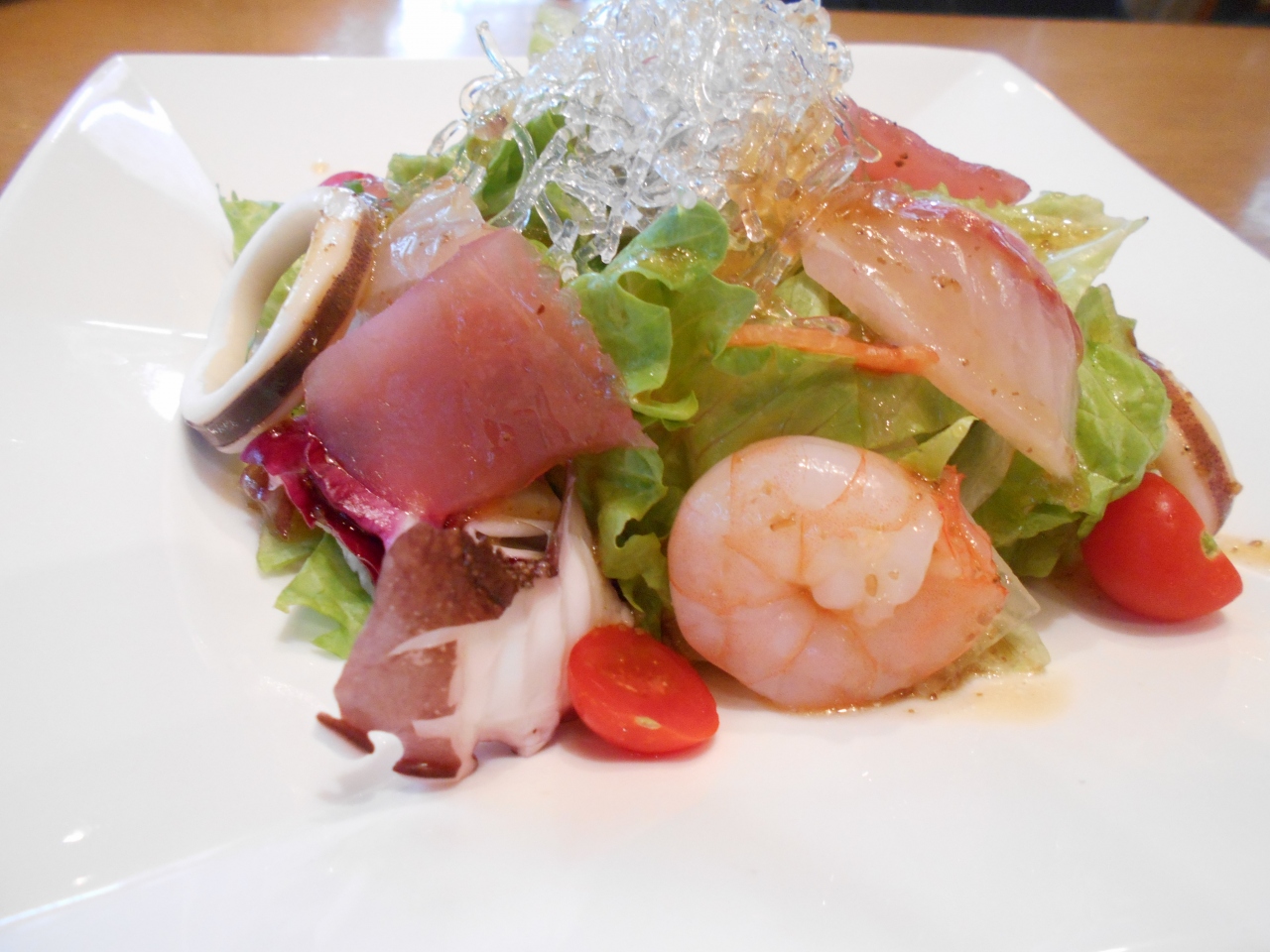 川豊本店は、新勝寺の参道にあるので閉店時間が早く、夕食は成田駅から数分の所にある西口館を利用します。午後5時開店に合わせて入店。まずは、海の幸サラダと生ビールでうなぎが焼き上がるのを待ちます。ビールを飲み干したところにうな重が登場。うな重は少し甘めのタレとの相性も良くべても絶品の美味さです。