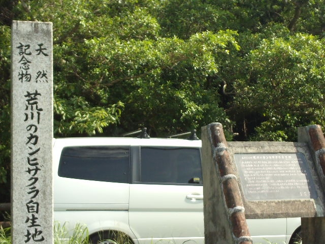 石垣島の観光地の一つです。米原方面に進んでいくと、こちらのゾーンがあります。カンヒガンザクラという、早く咲く桜の自生地だそうで、開花は1月、2月ごろが見ごろだそうです。桜としては本当に早い時期です。国の天然記念物の指定されているとのことで、石碑や説明板がありましたが、行ったのは9月でしたので花などは残念ながら見られませんでした。