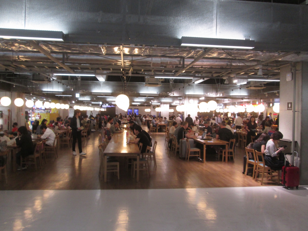 成田空港第三ターミナルにあるフードコートです。1階にあり何と24時間営業のようです。施設内には種々のメニューを扱うお店に24時間営業のコンビニエンスストアがあり、500席くらいの座席がありました。第三ターミナルにこんな大型フードコートが入っているとは思っていなく驚きました。