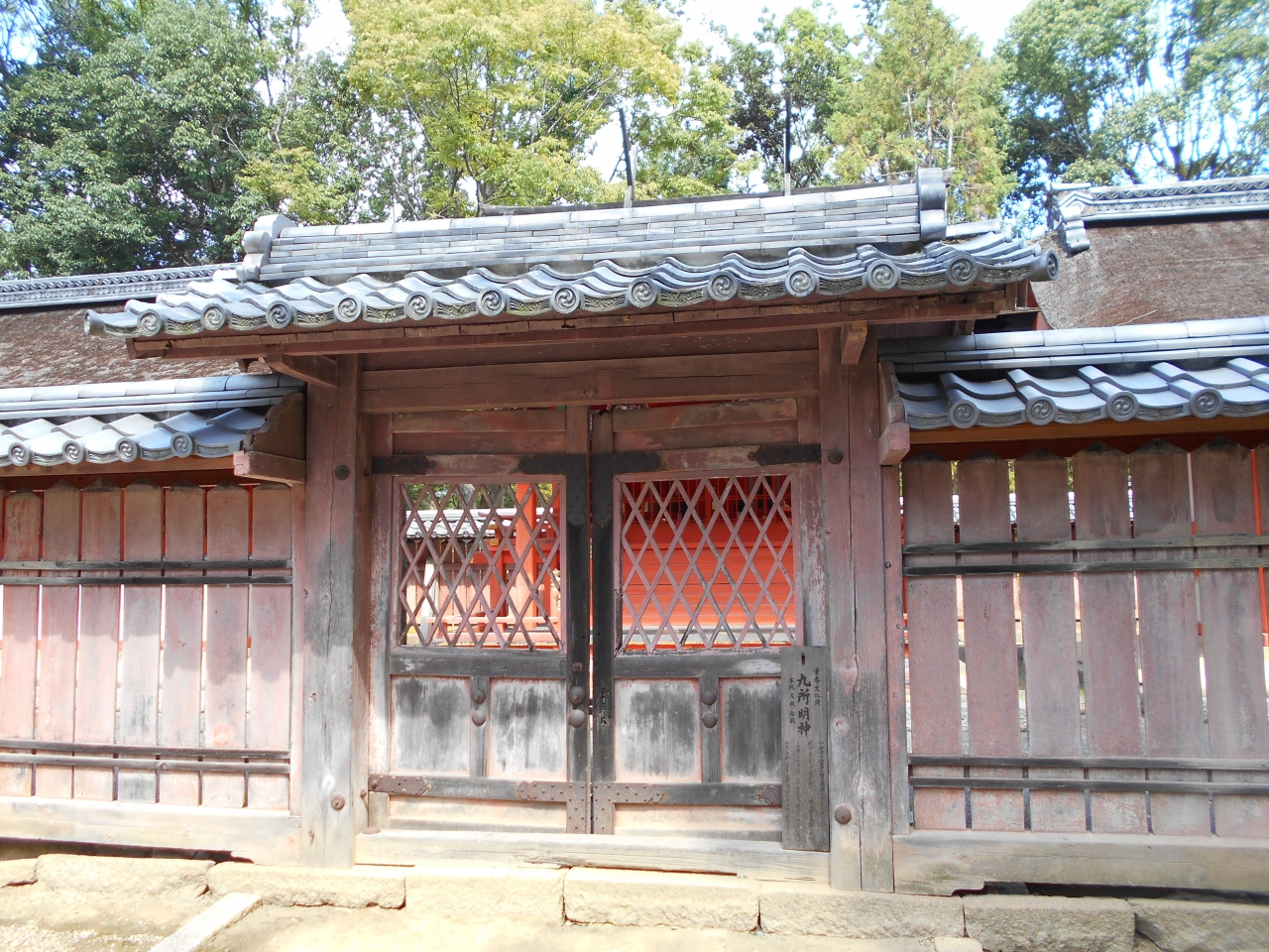 門跡寺院の代表格「仁和寺」五重塔の裏側に鎮座する社で拝殿から本殿・左殿・右殿の三棟社が朱色で建っています。仁和寺を守護する九座の明神で本殿には八幡三神、左殿には賀茂上下・日吉・武答・稲荷、右殿には松尾・平野・小日吉・木野嶋が祀られています。寛永18年(1641)~正保元年(1644)にかけて建立の何とも落着きある社です。