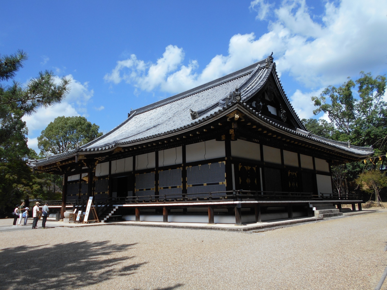 格式の高い門跡寺院の本堂で中門の真正面に建っています。慶長年間(1613)造営の内裏紫宸殿を寛永年間(1624~1644)に移築した物で美しい宮殿風の建築物です。現存最古の紫宸殿として国宝に指定されています。本尊の阿弥陀三尊像や四天王像などが安置されています。
