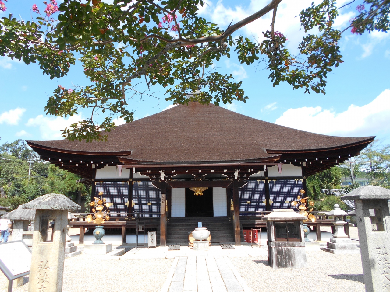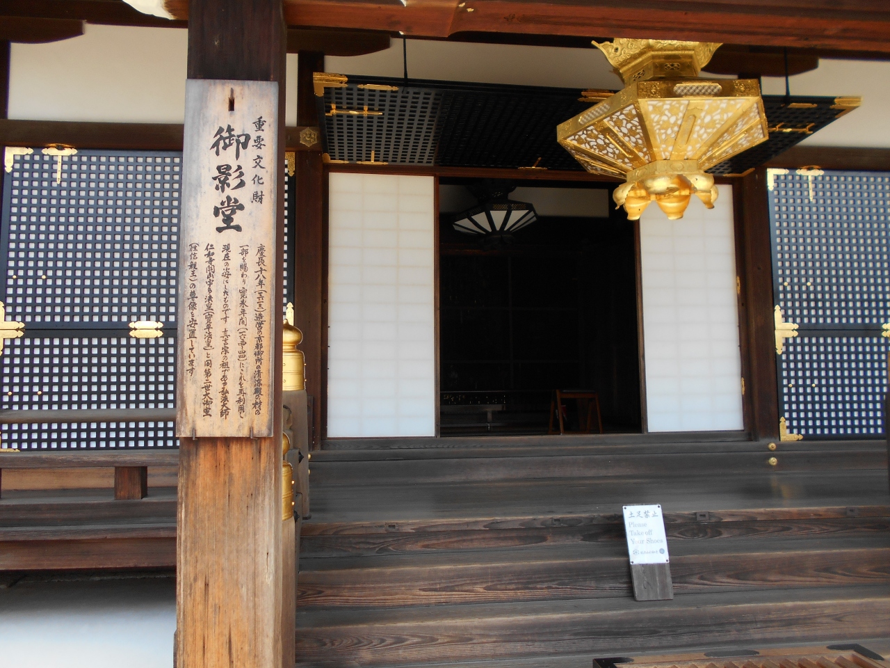 御室真言宗総本山の門跡寺院「仁和寺」の境内左奥に建つ真言宗開祖「弘法大師」を本尊として祀る御影堂。本堂である金堂の左側で朱色が輝かしい鐘楼の左隣に静かに建っています。御影堂も御所の清涼殿からの移築で造営したと言われ国の重要文化財に指定されています。