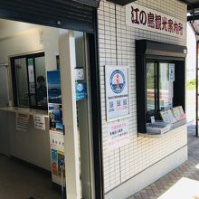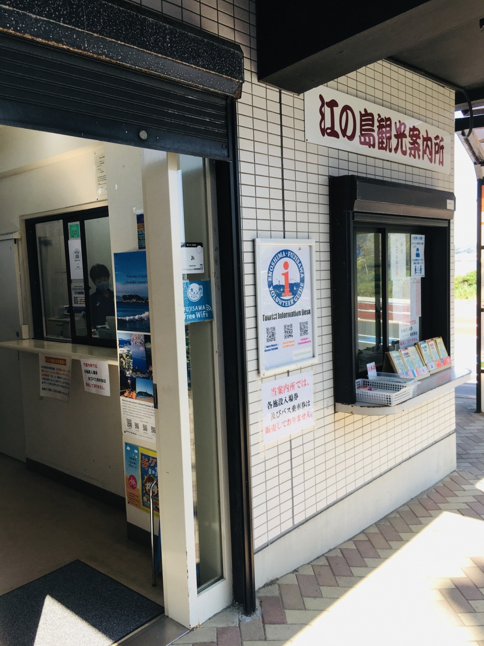 江ノ島大橋を渡ったところにありバス停の目の前で大変便利な場所にありました。バスの乗車券売り場のような建物でしたがバス券の販売はないです。数か国語の江ノ島の地図が置いてあり、思ったよりパンフレット数は少なめでした。