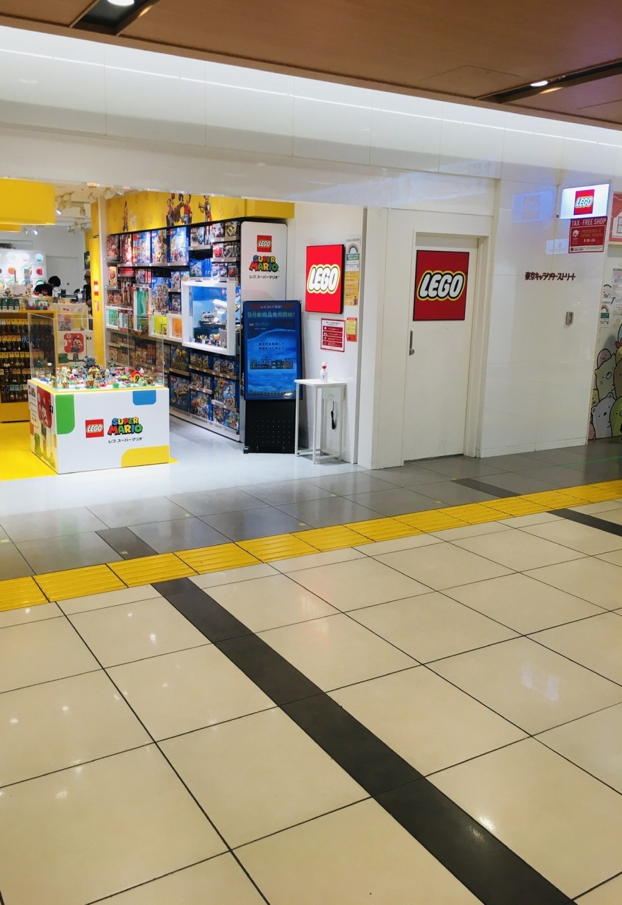 赤いロゴマークがやたら目立っていた外観です。店内出入口中央にはスーパマリオの小さな模型が展示されていました。ミニキーホルダーがたくさんあり動物のものがたくさんありました。ロゴストア限定商品も売っています。