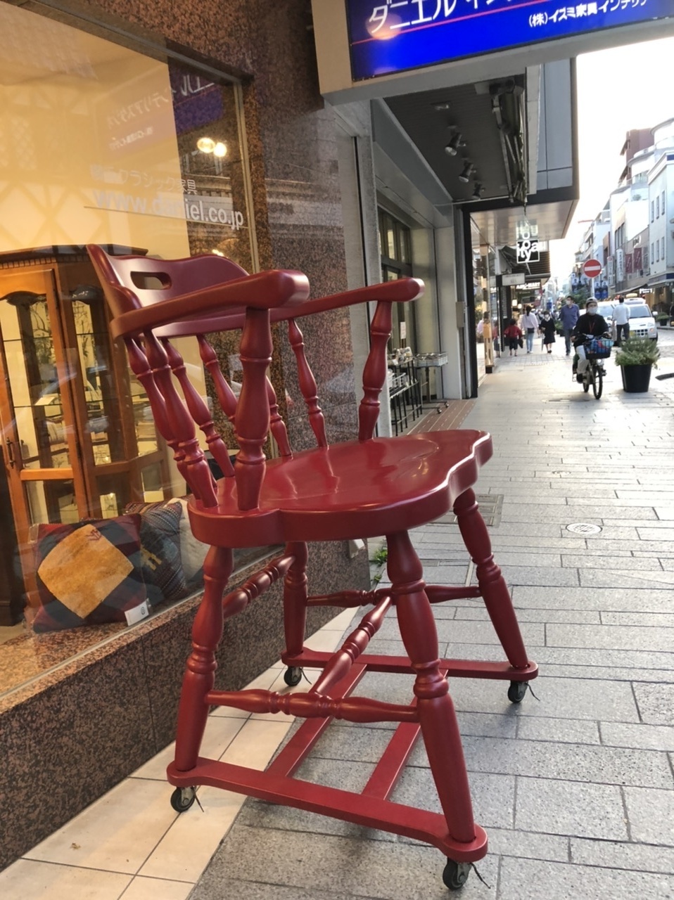 元町商店街の中ほどに、巨大な赤い椅子が歩道に出ていて目を引くお店があります。