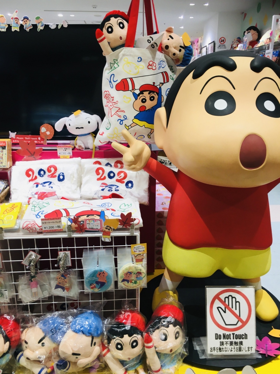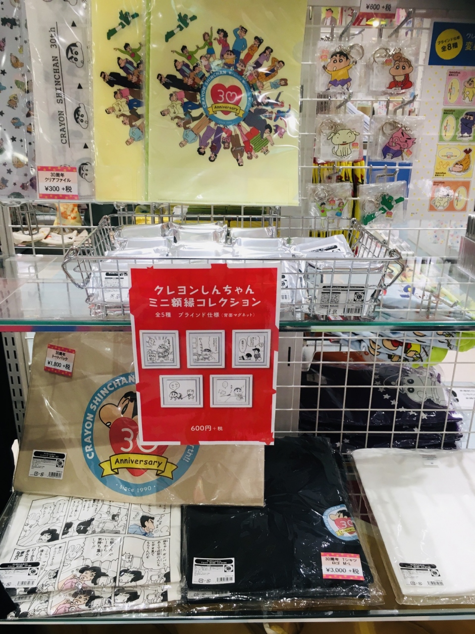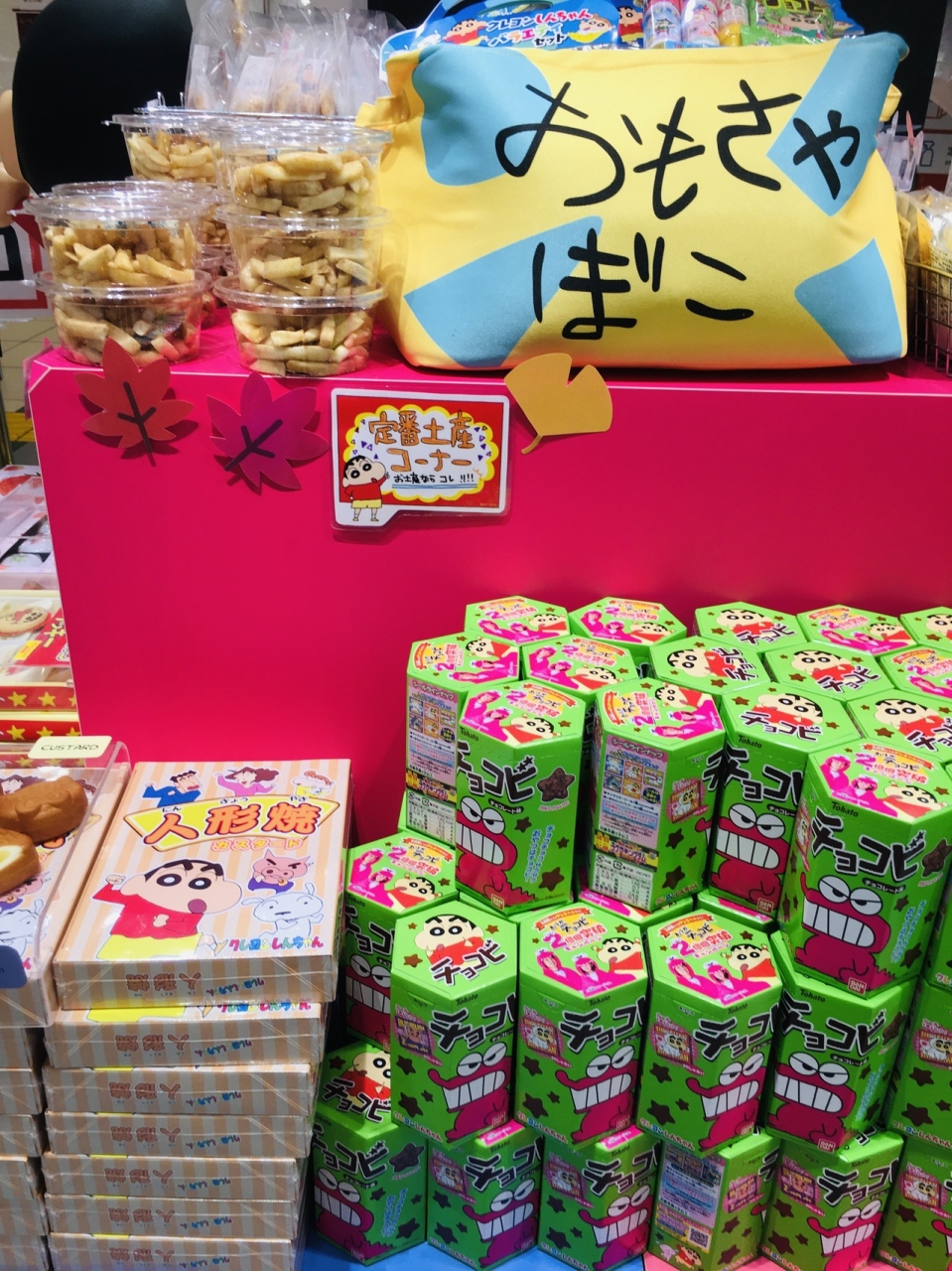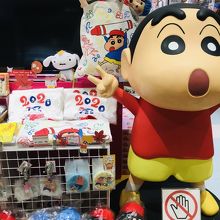 小さな人形がたくさん置いてあり、白いTシャツもありました。キーホルダー、クリアファイル等の文具類もあり専門店ならではでした。クレヨンしんちゃんの絵が入ったお菓子も置いてあり、人形焼はお土産にも使えそうでした。