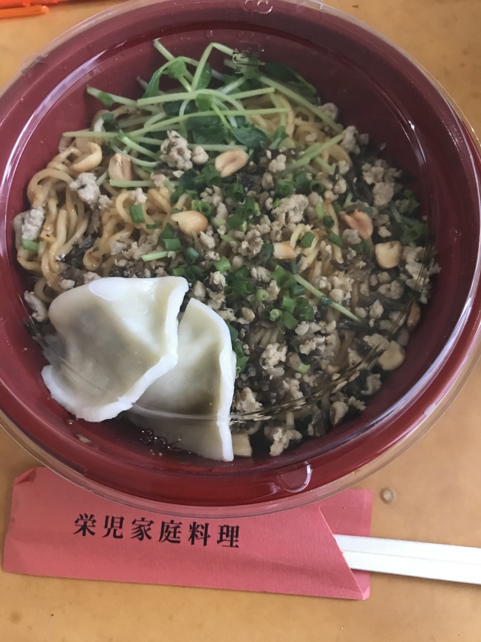 サンシャインシティの3階レストランフロアにある、中国家庭料理の栄児さんです。こちらはランチタイムはテイクアウトも併せて営業しております。汁無し坦々麺が800円です。山椒やラー油の辛さが麺によく絡みます。