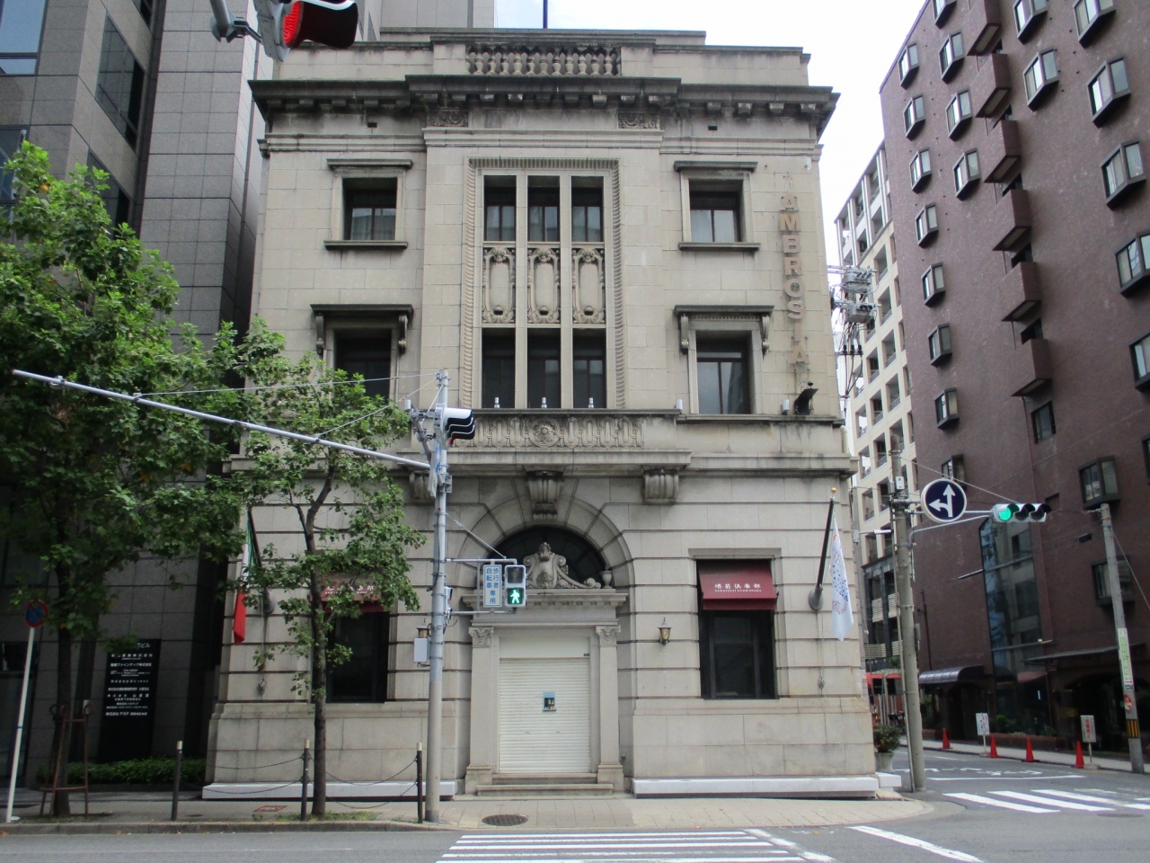 堺筋倶楽部は堺筋ぞいにあるレストラン、ウェディング披露宴会場などです。もとは1931年(昭和6年)にできた旧川崎貯蓄銀行大阪支店です。2000年まで銀行として続いていました。
