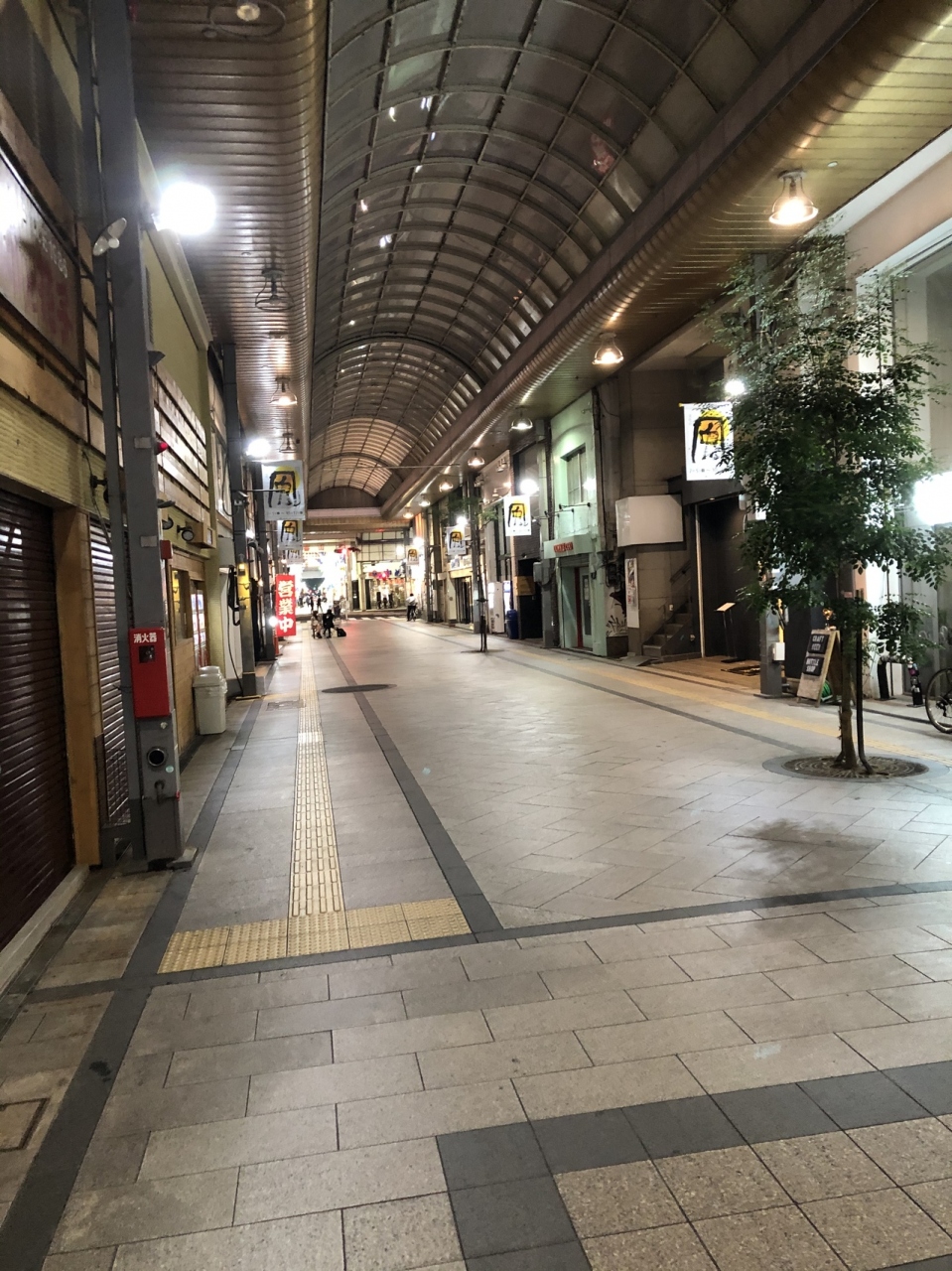 宮崎市の橘通りから駅方面に向かうアーケード街です。昼間はお洒落なファッション系の店がたくさんあり飲食店も数店ありますがコロナで20時くらいに通りましたが全く人はいない感じでした。駅までは歩くと10分くらいかかります。