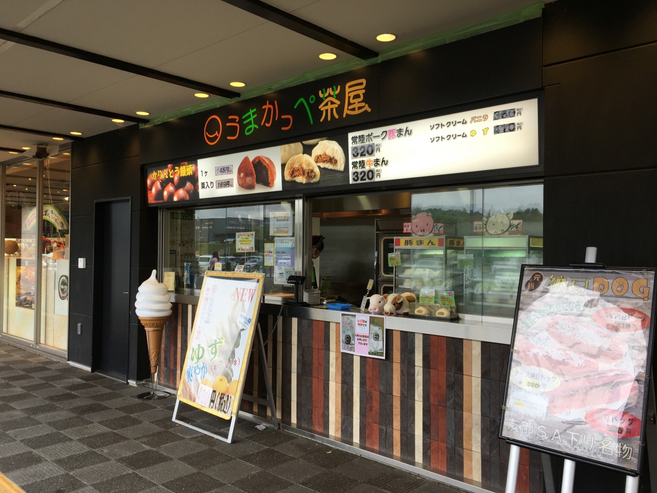 県北の中では広くて充実したサービスエリアです。茨城の味を扱ったフードコートやレストラン,パン屋さんももあり,休憩をしながら飲食もできます。また,コンビニ,お土産シップもあります。半屋外の軽食コーナーでは茨城を代表する納豆をパンにはさんだ「納豆ドック」を食べることができます。ご飯ではないので,そのままかぶりつくことができますよ。サービスエリアから出ると,すぐに北関東自動車道との分岐点があるので,走行には注意が必要です。
