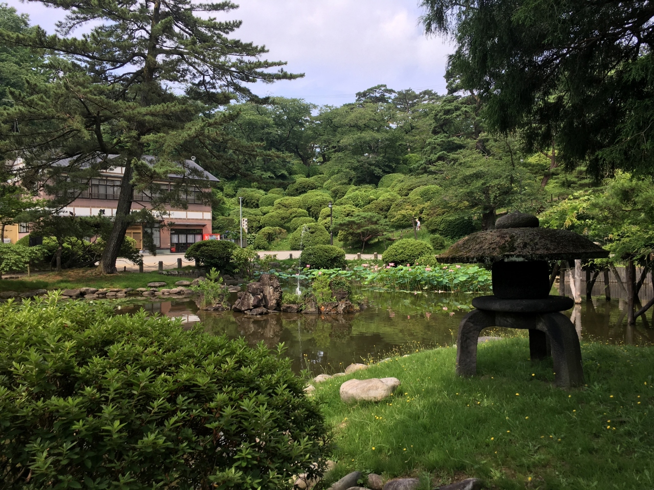 胡月池はJR秋田駅から徒歩10分くらいの千秋公園にあります。この胡月池には大賀ハスが栽培されています。大賀ハスは1951年にハス研究家大賀一郎博士が地元中学生等の協力を得て、千葉県検見川の泥炭層下の青泥層から約2000年前のハスの種を発掘、発芽に成功させて古代ハスです。2002年からこの池で栽培しているとのことです。千秋公園を訪れた時は、見て頂きたいスポットです。