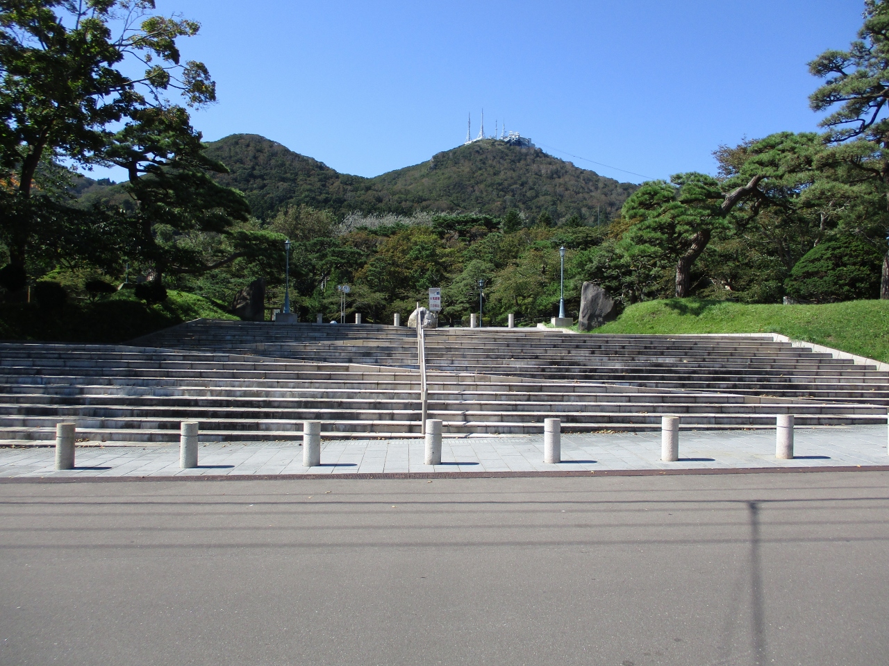 函館市内にある公園で、函館山の頂上が間近に見えました。公園の由来が書かれた碑によると、明治12年に開園したそうです。函館で人気者であった英国領事のユースデンさんの呼びかけに市民が率先して資金や物資、労力の提供等をして完成した日本初のパートナーシップ型公園です。