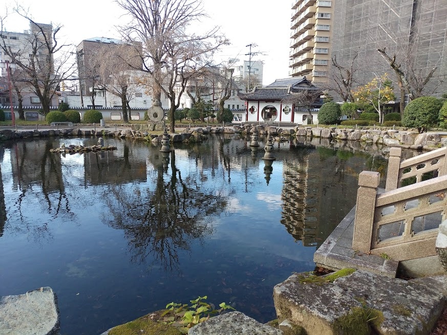 中国様式の庭園、真ん中には、とても大きな池がありました。