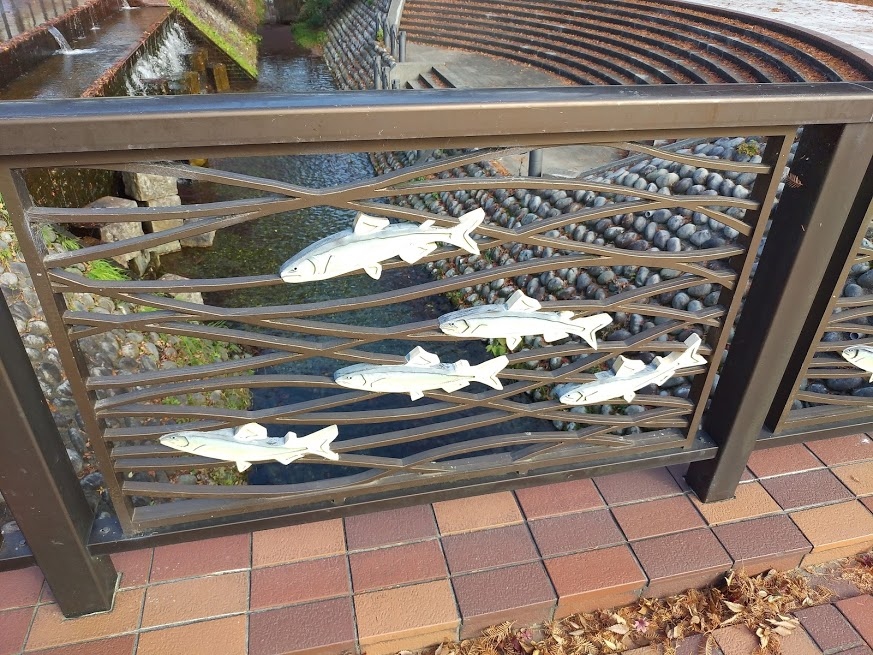 あちこちに鮎をイメージしたオブジェがありました。