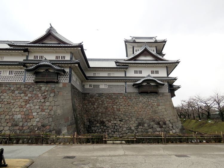 三層三階の物見櫓で五十間長屋、(橋爪門)続櫓と一連の構造物となっています。明治以降では国内最大級の木造建築物だそうです。内堀を挟んで河北門、石川門をはじめとする金沢城の北半分をすべて見渡すことができます。華やかで目立つ三重櫓です。