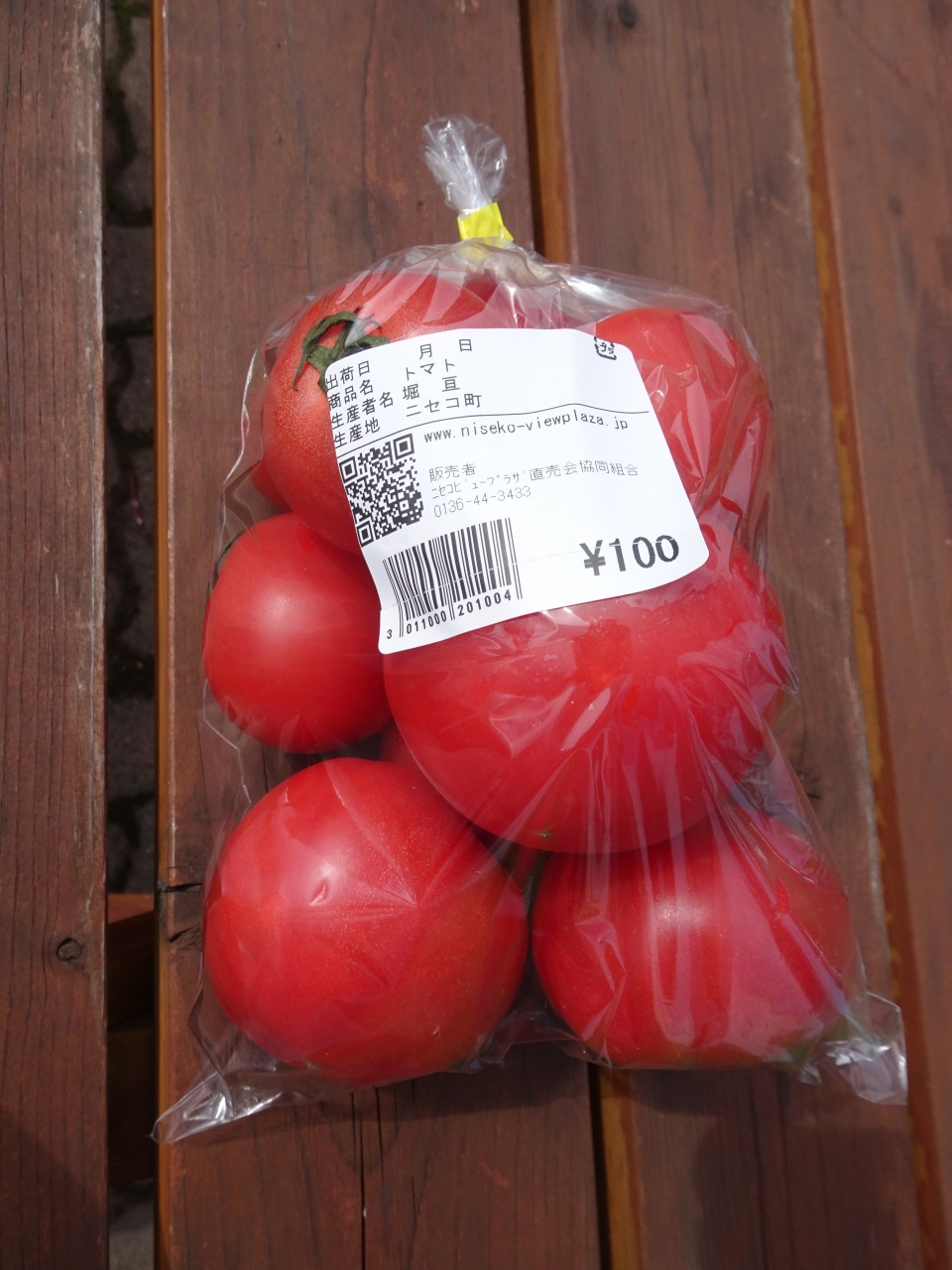メロンやじゃが芋、トウモロコシなど数多くの農家直送の申請野菜が販売されていますが、トマトなどは大小10個 袋に入っていて、なんと税込み100円でした!