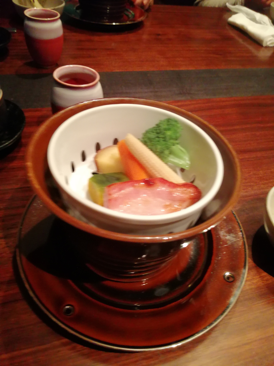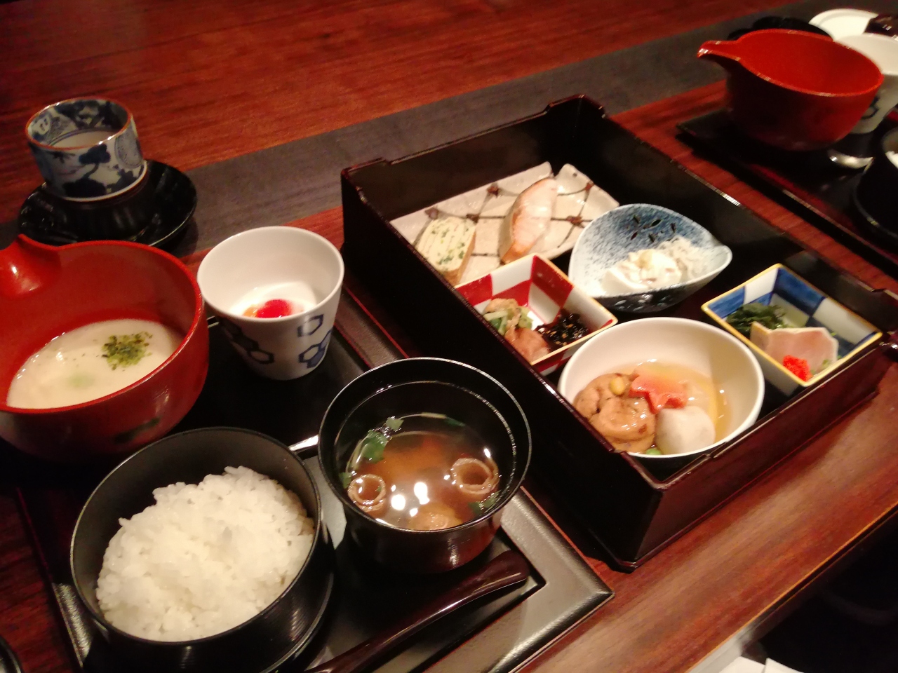とろろとか鰆のお造りとか、煮物とか温野菜とか、朝からリッチにいただきました。ご飯もお替りできます。ベーコンとヤングコーンがとてもおいしゅうございました。