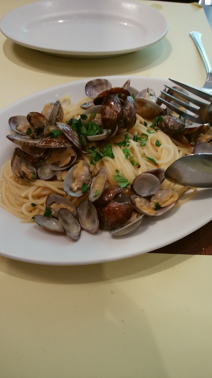 今回は、白エビのフリット、ピッツァマルゲリータ、ボンゴレビアンコを注文。