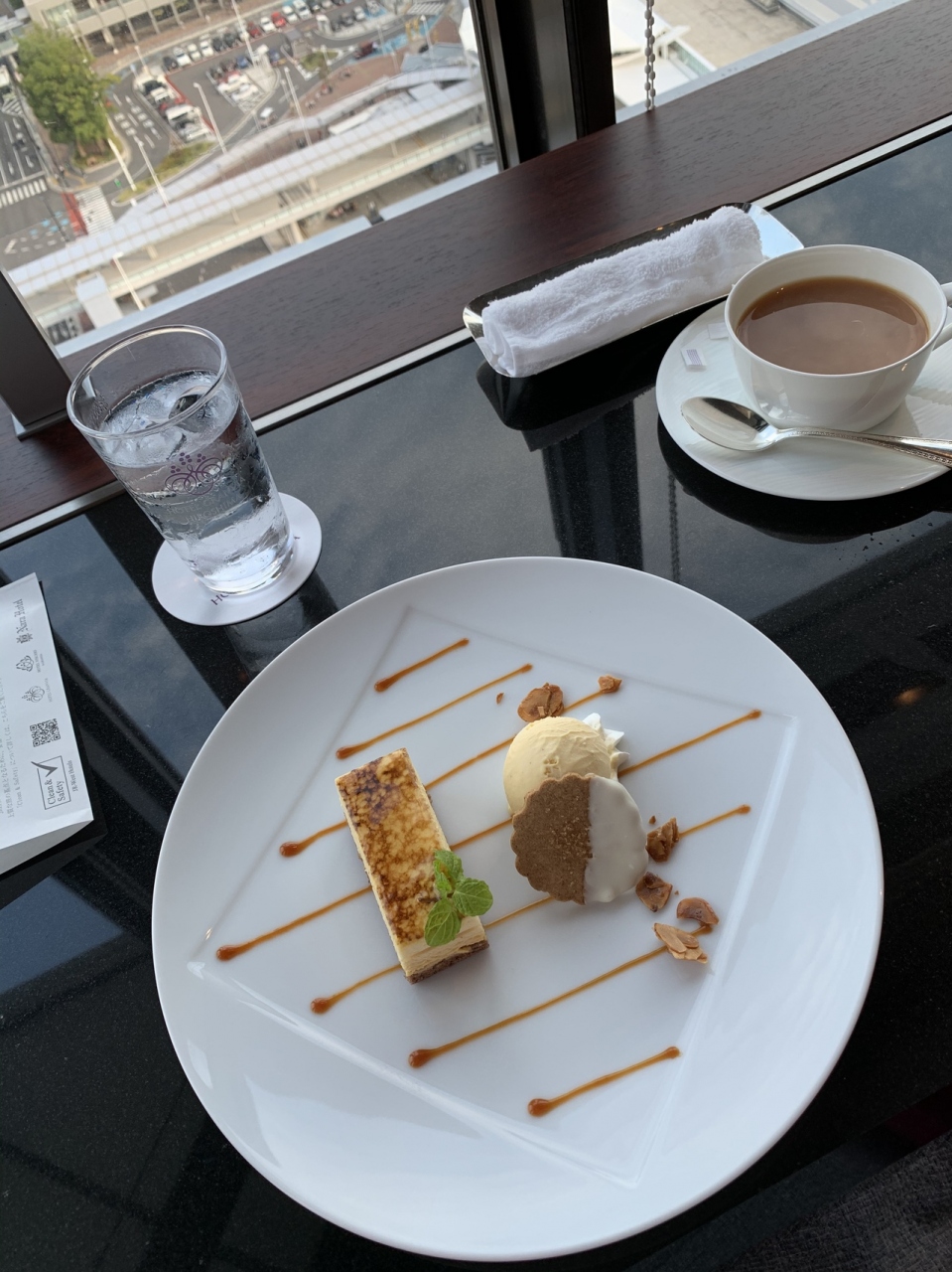 ケーキセットをいただくために訪問しました。21階から見える景色は広島の街を眺めることができ、また広島駅も見下ろせるのでとてもいいです。ケーキもとても美味しく、綺麗でした。マスクケースも用意してくださるのでよかったです。