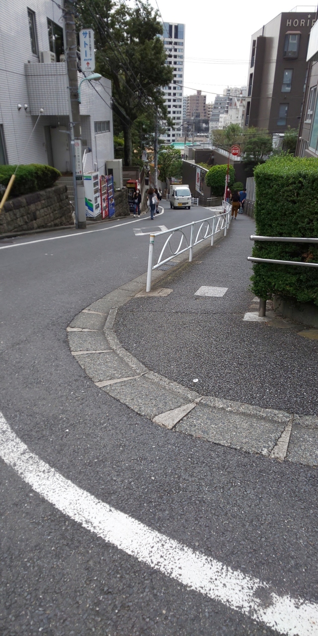 けっこう急な坂道です。他の通行してる方々をみても息があがっている方が多いです。付近の住民やこのあたりの会社づとめの方は毎日大変だろうと思います。