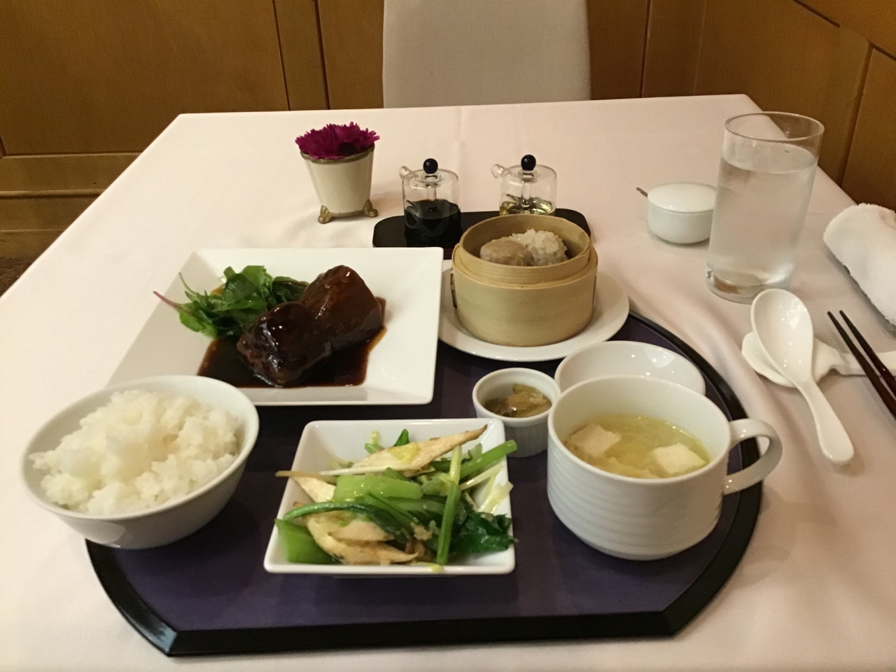 メニューには、野菜とキノコの炒め小鉢・点心・スープ・ご飯・ザーサイが付いています。さらに1ドリンク付です。