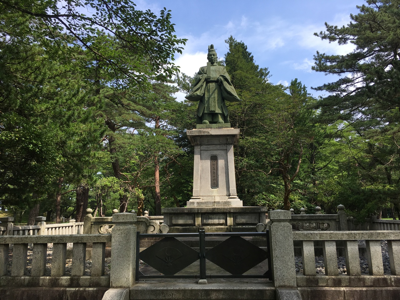 佐竹義堯の銅像は、千秋公園(久保田城跡公園)にあります。佐竹義堯(1825~1884年)は、近代秋田を開いた秋田藩最後の藩主(第12代藩主)であり、戊辰戦争では新政府方に属して戦ったとのことです。初代藩主ではなく、最後の藩主の像です。この像は、1915年に建立されたが、太平洋戦争の際中、金属回収策の為姿を消し、1953年、銅像の原型を奉安、1989年、現在の姿に復元されたとのことです。