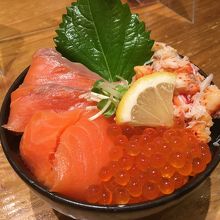 小ぶりな海鮮丼が一種類だけあったので、私はそちらを頼みましたが、意外に食べ応えありました。小ぶりの丼も種類が選べたらいいのになぁと思いました。