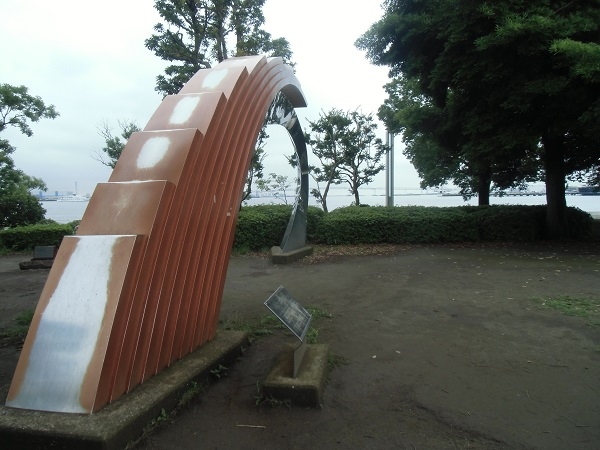 説明板によると、1995年に建立された碑で、「歴史と未来への讃歌」というタイトルで虹をイメージして造られているそうです。