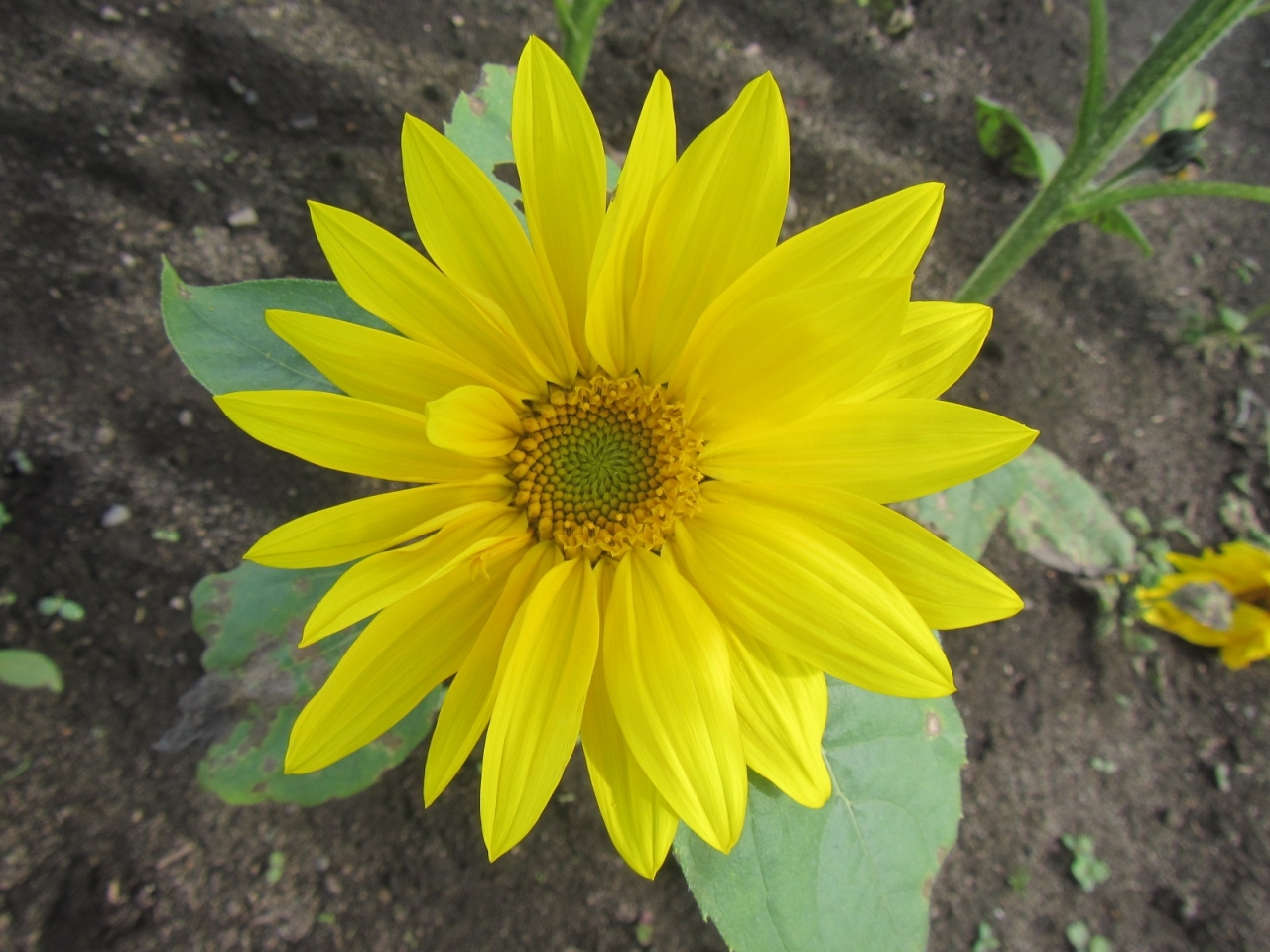 むしろ、鑑賞台に登るより、大人なら少々しゃがんで眺めた方が花が目線の高さとなり、ヒマワリの間の地面が角度的に見えなくなって、よりきれいに見えます。