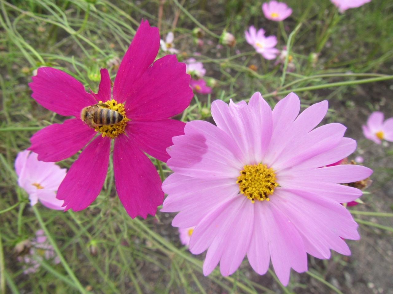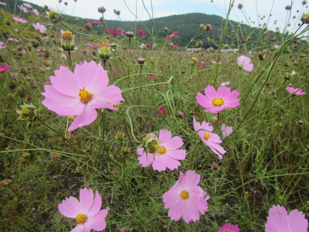 ヒマワリ畑の手前にコスモス畑がありましたが、こちらは花がかなり落ちていて、1ヶ月ほど前の9月上中旬辺りが見頃ではないかという感じでしたが、多少残っているコスモスの花を鑑賞することができました。