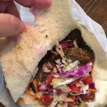 中身は野菜・ひよこ豆のコロッケが入っている大きいピタパン。