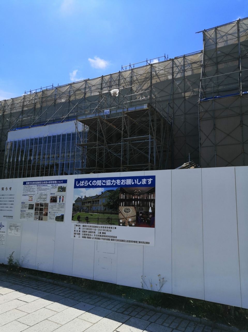 元町公園と隣接した場所にある建物で、集会所や商業会議所事務所として明治43年に現在の場所に建てられたそうです。洋風建築の代表的建物で、国の重要文化財ですが、令和3年春まで保存修理工事中です。残念ですが、360度カメラで館内を撮影したVRを市のHPで見ることができました。