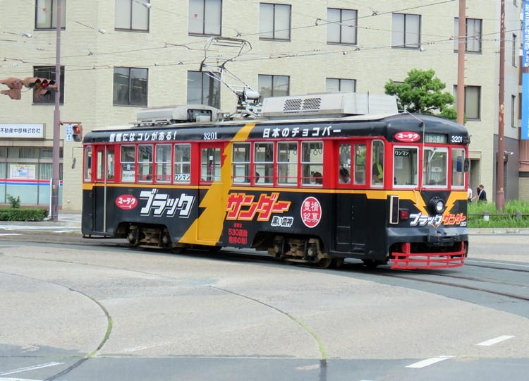 豊橋鉄道には市内線(路面電車)と渥美線がありますが、このときは豊橋駅に立ち寄って路面電車に会いに行きました。わずかな区間だけ乗車もしましたが、みんなカラフルなラッピング車両でした。併用軌道を走るところは自分の地元・函館の路面電車と何ら変わらない風景でした。