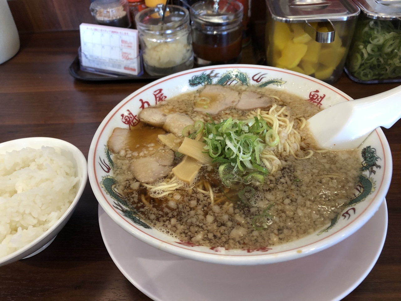 京都ラーメンのチェーン店です。テーブルにはネギと沢庵があり入れ放題。麺、背脂は自分好みに選択ができます。味付けはノーマルが醤油味。チャーシューメン並みにチャーシューが入っています。辛みの調味料がテーブルにあり少し入れたら美味しいですよ。