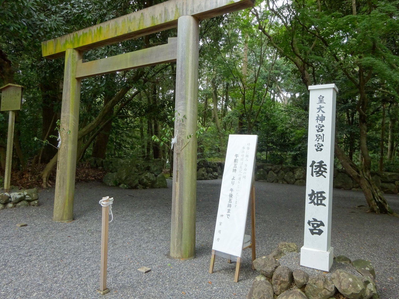 倭姫宮は森に囲まれた小高い丘の上にあって、自転車での移動だったので坂道を登りました。倭姫宮は広大な森の中に厳かに佇んでおり、ゆっくり参拝出来ます。