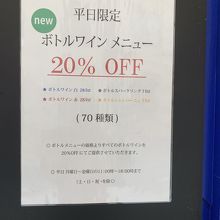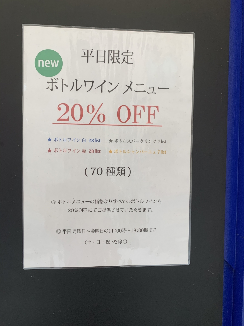 〈平日限定 ボトルワイン メニュー 20% OFF 〉