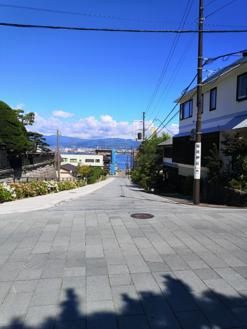 市電の末広町駅の目の前を通っているので、アクセスはいいです。函館港を一望でき、空模様を読むのに適した場所だったことからつけられたそうです。坂の突き当りには由緒正しき船魂神社がありますし、元町公園周辺の観光スポットにも程近いので、散策する機会をもちやすいです。