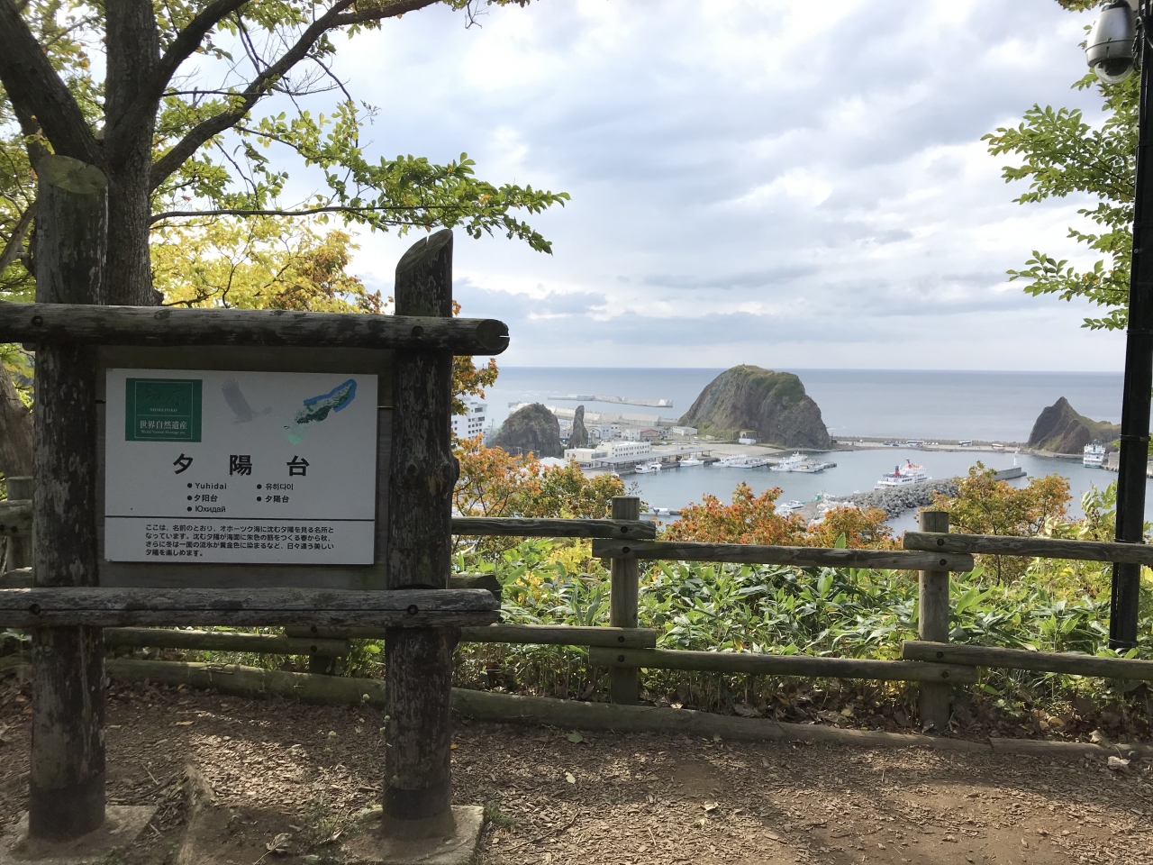 高台にあり、ちょうどウトロ港を見下ろす形になります。オロンコ岩も正面に見えました。訪れたのは夕陽の時間帯では無かったためか、他に観光客はいませんでした。とても見通しの良い場所なので、水平線に沈む夕陽が綺麗に見えると思います。