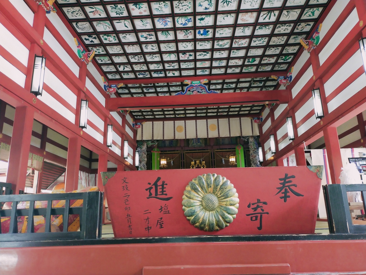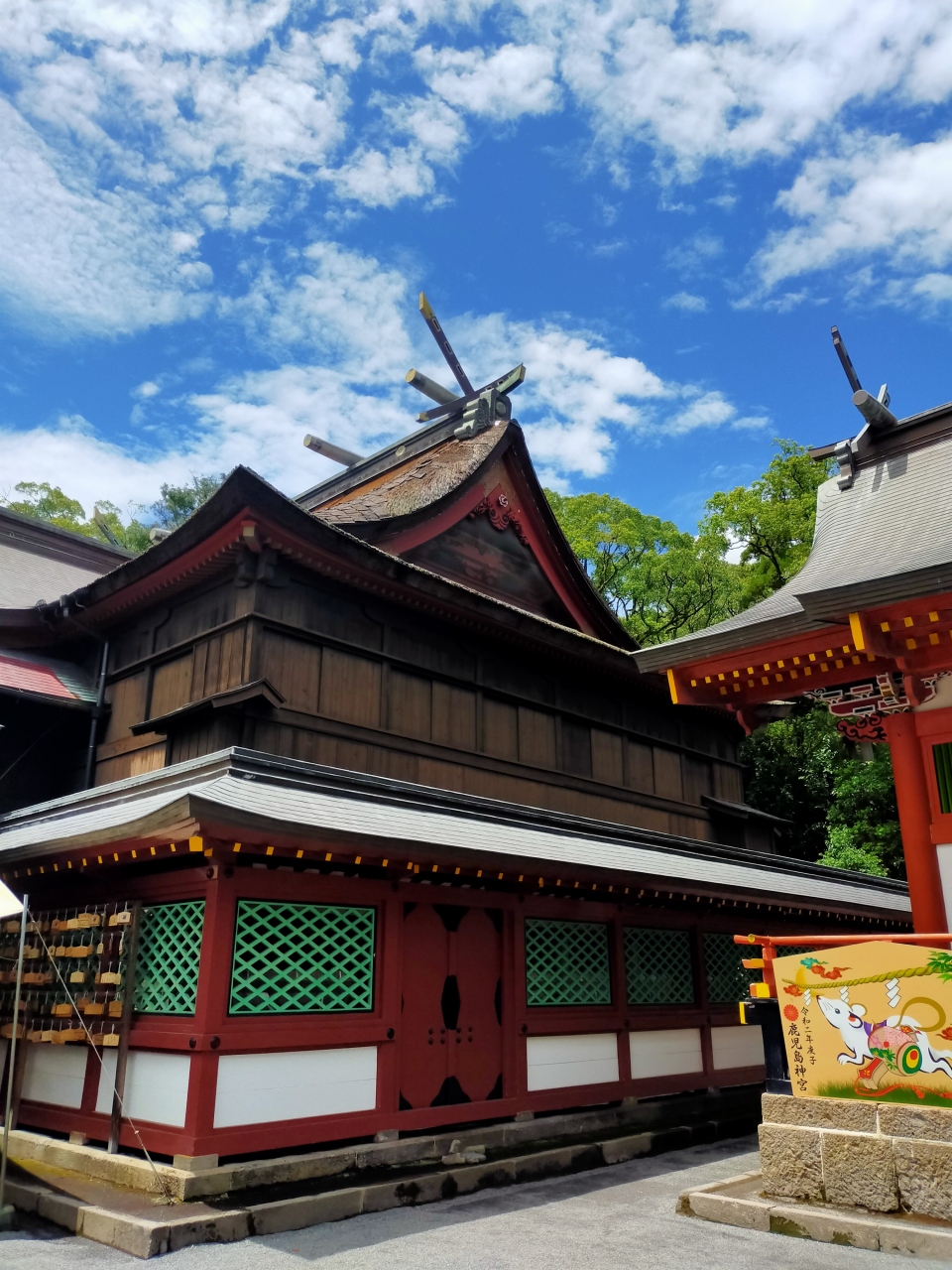 漆塗りの神殿は宝暦6年今から約260年ほど前に、島津重年公により再建されたもので、本殿は木造建築では鹿児島県内でも最大級のものだそうです。