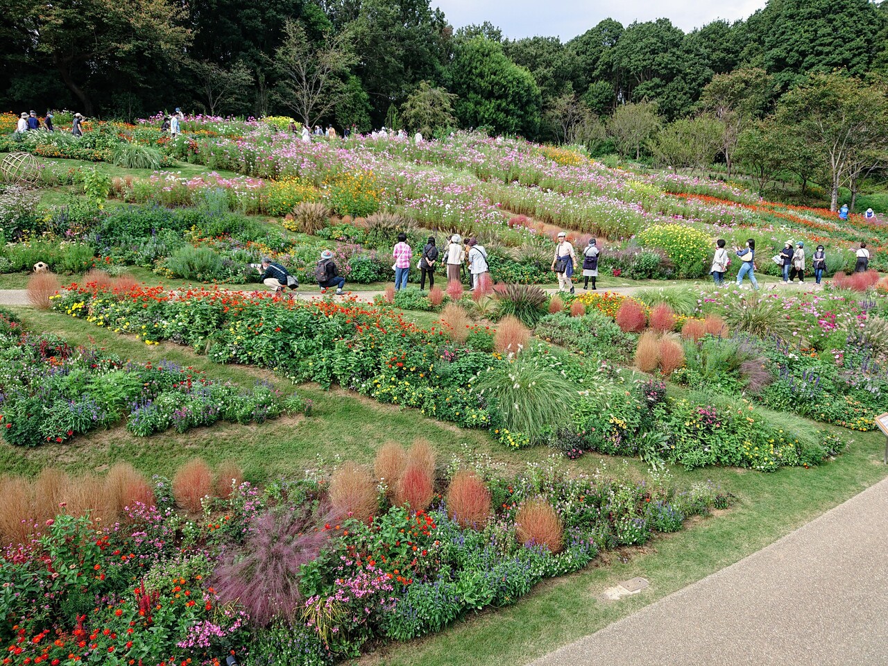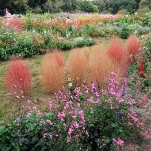 中心部にある大花壇ではそれぞれの季節の花々が咲き乱れます。