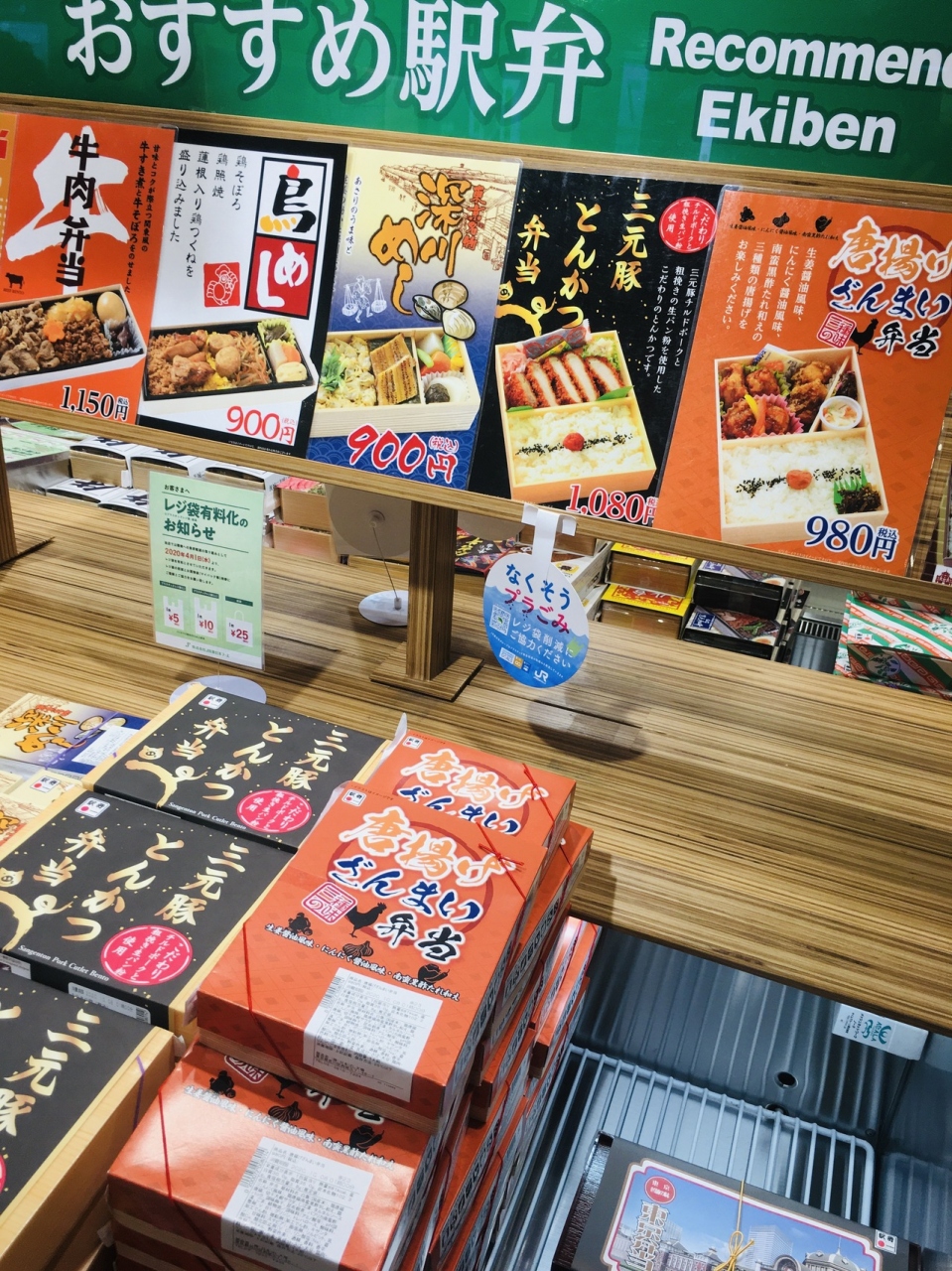 東京駅内8.9番線ホーム下にある通路沿いの店なので混み合っていました。明るい店内で駅弁のデパートと等言った感じでどの商品もパッケージデザインが良かったです。値段は1000円前後の商品が多かったですが600円の稲荷寿司すけろく弁当もありました。ドリンク類も充実しています。