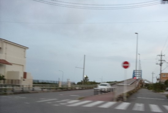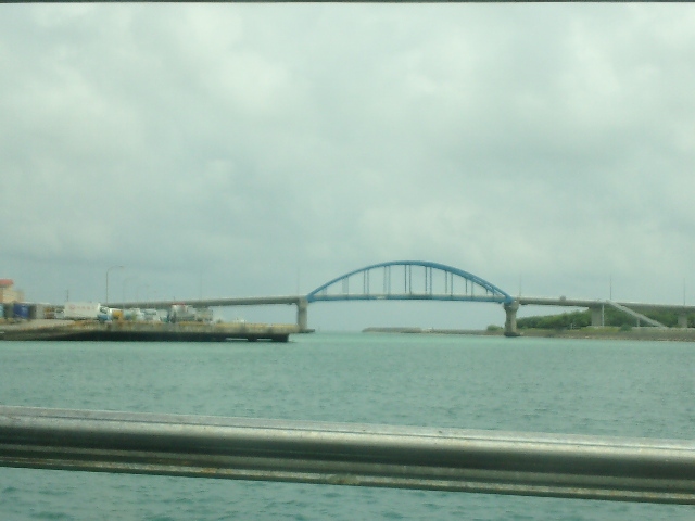 石垣島にある橋です。町中から近い場所にあってアクセスがいいです。南ぬ島まで結ぶ、石垣港にかかっている橋で、夕日がきれいな場所とのことで訪問しました。形は青いアーチでよく目立ちますので、船に乗っているときにもよく見えました。