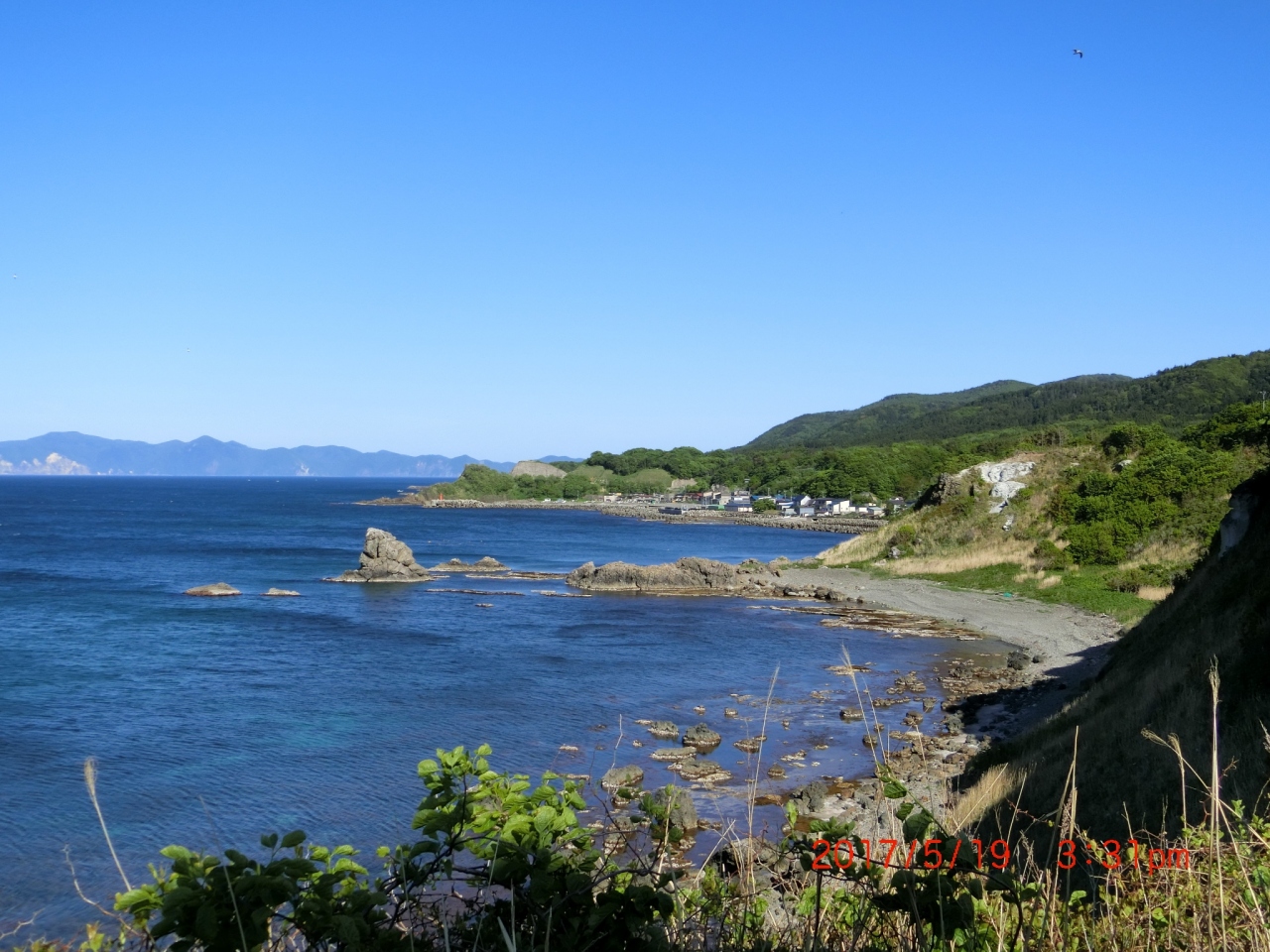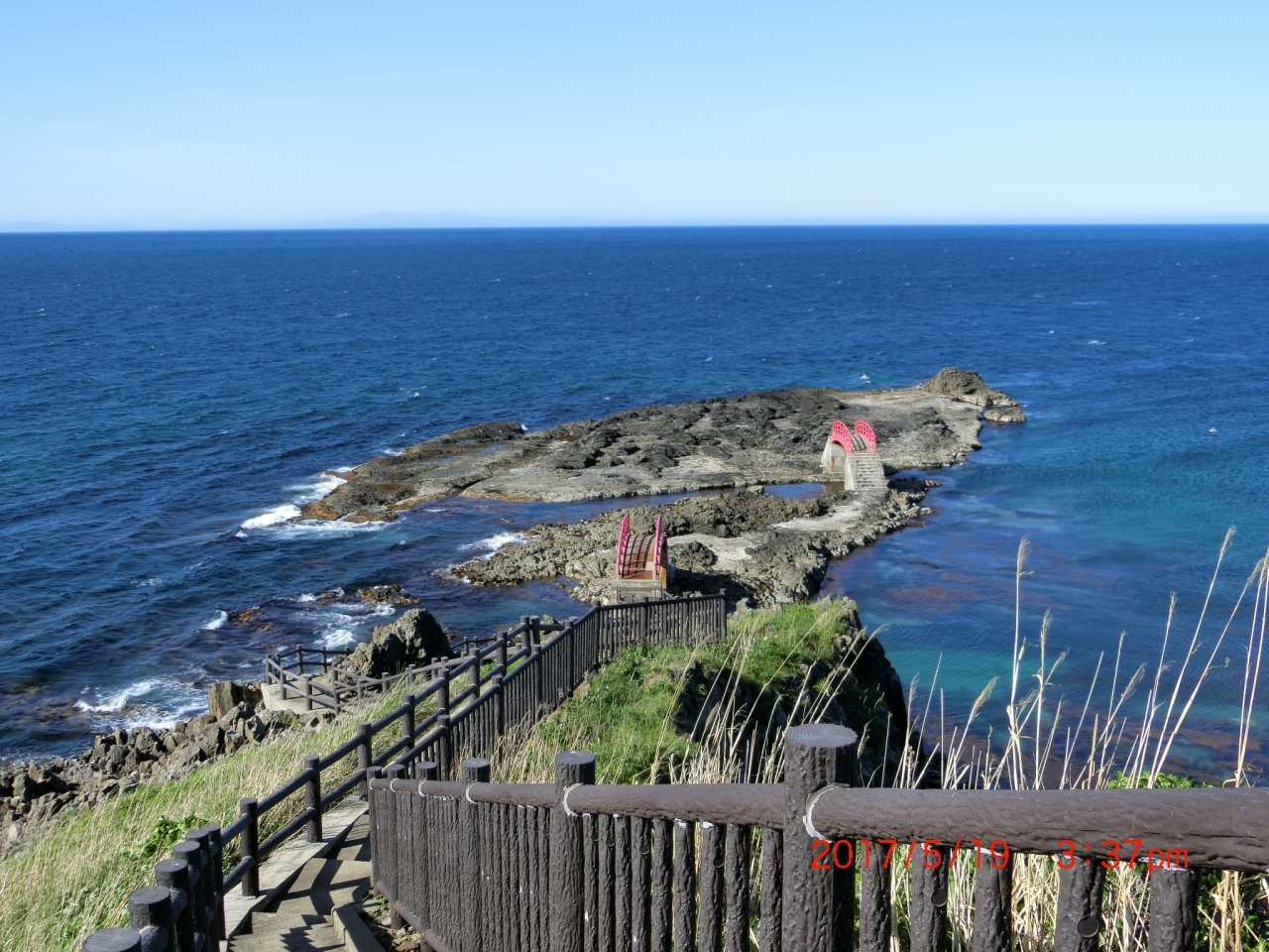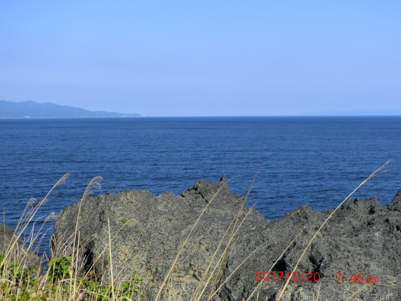 - 青い海、断崖に打ち寄せる白波、遠くには津軽海峡や北海道の松前半島まで見えます。