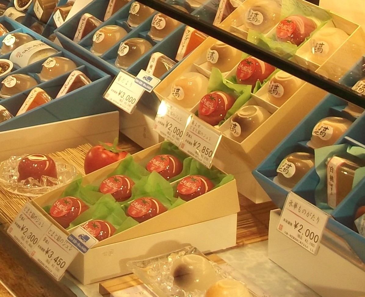 JR東京駅隣接の大丸東京店1階にある、甘納豆の専門店銀座鈴屋のショップです。甘納豆やぜんざいが有名ですが、季節に合わせたジュレや葛よせも販売されていました。とまと餡のジュレは値段はやや高いですが、ほどよい酸味が夏の季節にぴったりでおいしくいただきました。