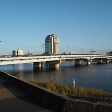 松江市街地を東西に流れる大橋川の一番西に架かる橋が宍道湖大橋です。松江市街地には4つの橋が架かっていますが、ここが一番西にある橋です。橋はコンクリートの近代的な橋で、交通量も多い橋です。橋の両側は宍道湖の湖畔を歩ける遊歩道になっているので、宍道湖大橋を渡って、湖畔を歩くようになります。橋の袂には松江市でも最も高い建物である山陰合同銀行のビルがあります。https://4travel.jp/help/guideline/tips/