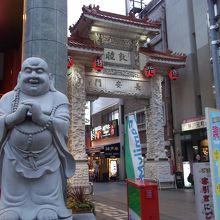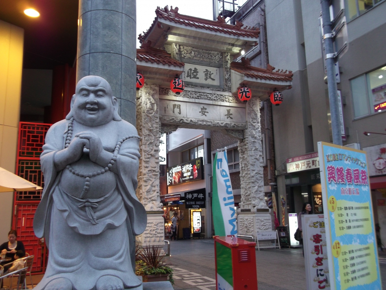神戸中華街の南京町に入る門の中で、いちばん東側にある門です。細かい彫刻の施された石造りの柱が大きな屋根を支える、どっしりとした造りをしています。門をくぐりチャイナタウンに入るとたくさんの飲食店や雑貨店が並んでいて、期待感で胸が高まります。