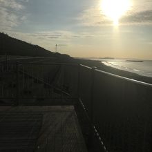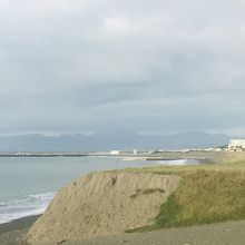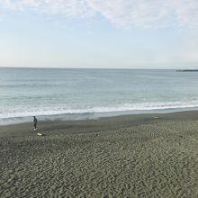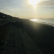 海沿いの道路との間に木々が並び、木々の隙間から海岸に出ると海が広がっていました。海岸の上は遊歩道のようになっていて、走っている人や散歩している人が結構いました。遠くを見ると三浦半島を見ることが出来ます。海岸はよく見かける風景でした。