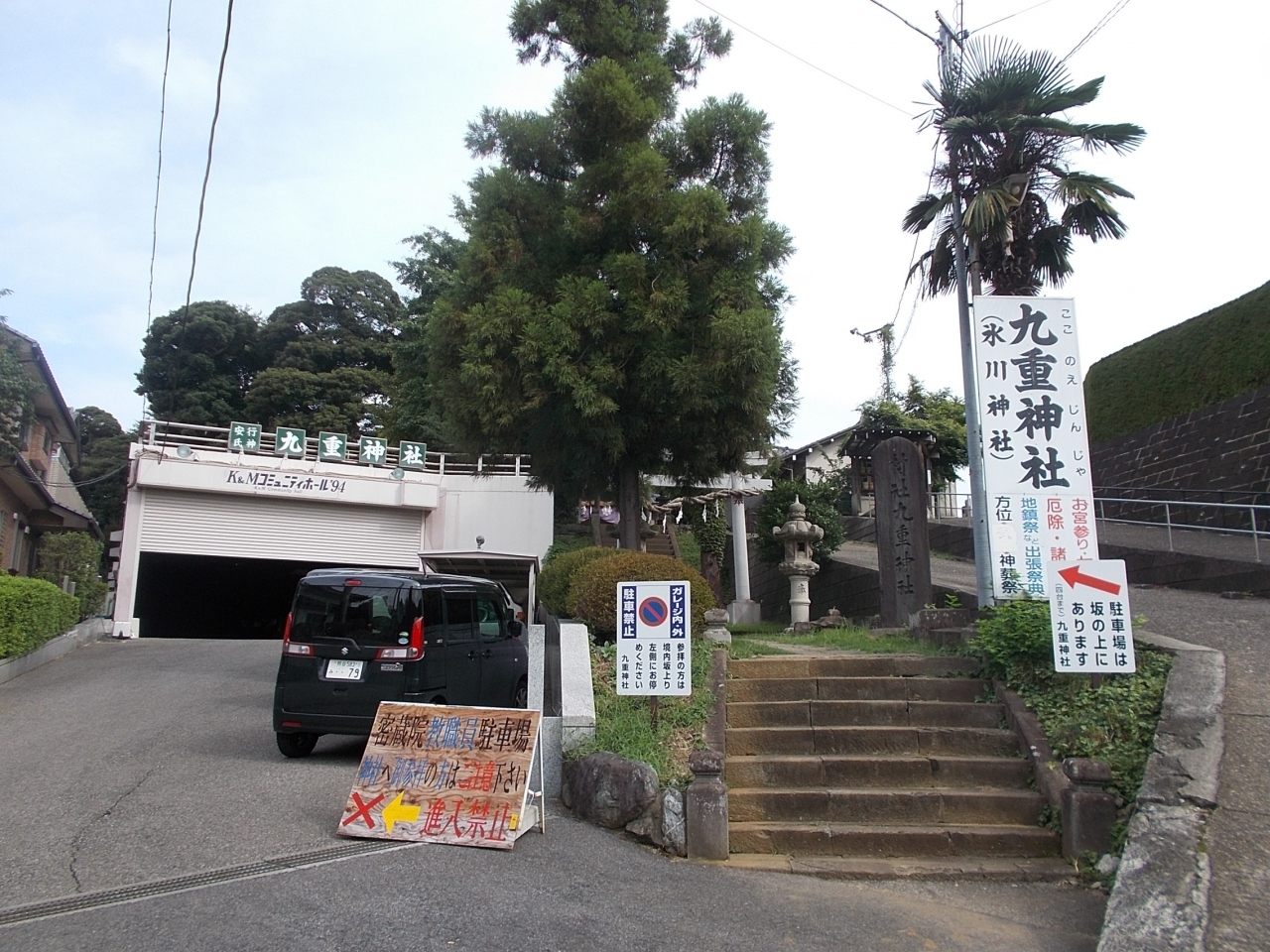 この九重神社は川口の東端の安行の地にあります。JR京浜東北線川口駅か西川口駅からバスで約30分でそのあと10分程度です。密蔵院の東側にある丘の上にあります。18世紀前半に大宮の氷川神社から勧請してこの安行の氏神様として信仰されました。この寺の敷地内に御岳山があり安行の地の最高峰とのことです。
