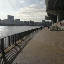 歩いても渡ることができ、水上バスを眺めたり、川沿いを散歩したり、ジョギングしたりすることができます。夜はライトアップもされるようです。
