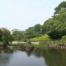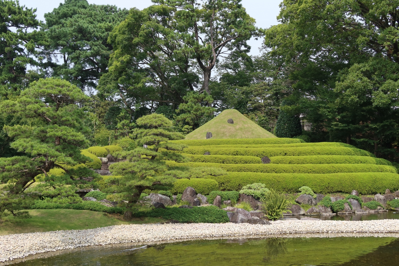 駿府城公園の北東部にある大名庭園が紅葉山庭園です。庭園は里の庭、海の庭、山里の庭、山の庭と四つの庭からなり、それぞれ趣きのある庭園の姿が見られます。その中でも特に山里の庭は静岡らしく富士山を模した山に茶畑の様に見えるさつきの植え込みが目を引き面白いです。 茶室では有料ですが、お茶を頂くこともできます。
